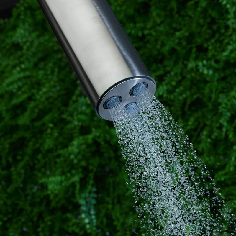 szabadon álló és falra szerelhető kültéri zuhanyok rozsdamentes acélból és márványból